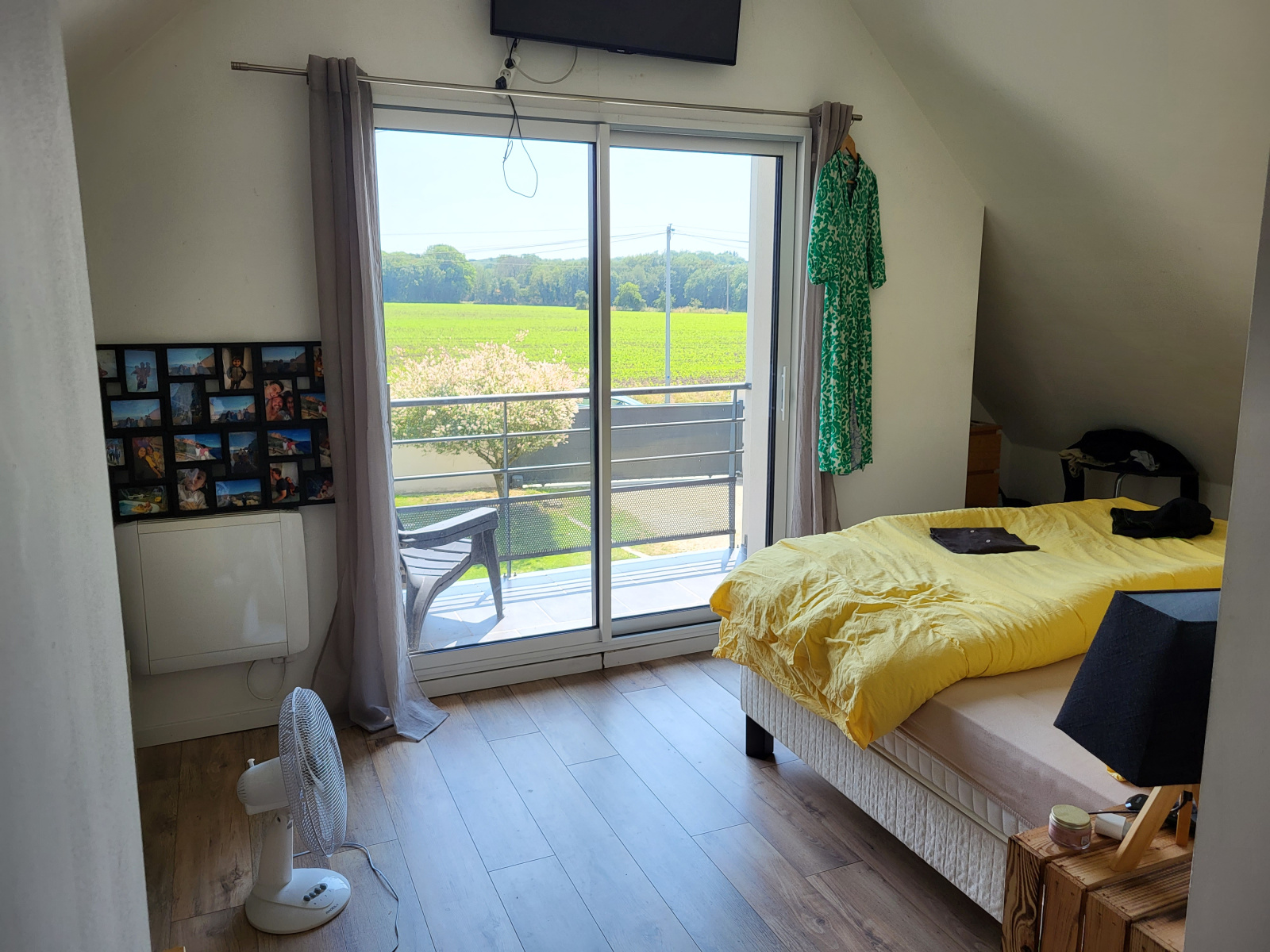 À l'étage : dégagement donnant sur 3 chambres, dont une spacieuse avec balcon, un bureau, SDB et WC.