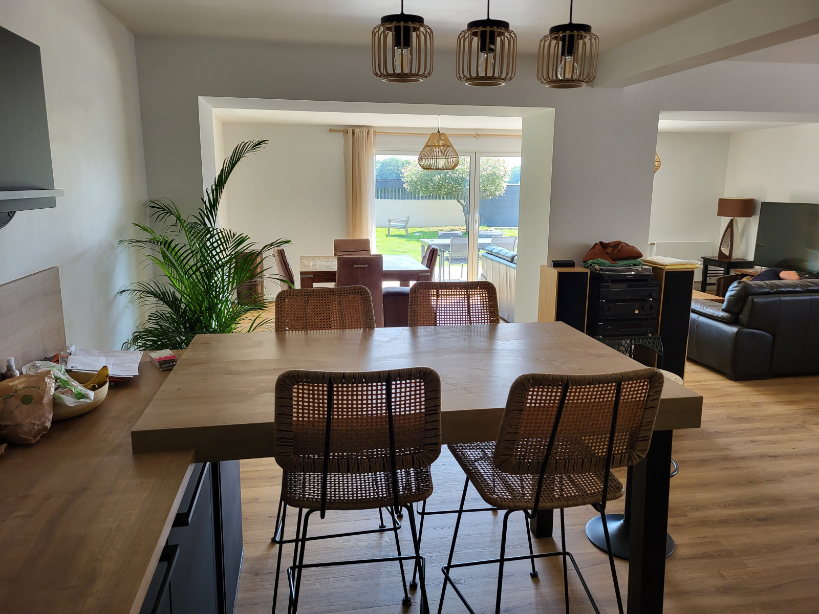 Maison de construction moderne située dans un quartier calme de Belz, offrant au RDC : un salon/séjour spacieux donnant sur une cuisine américaine toute équipée, une chambre, SDE et WC séparé.