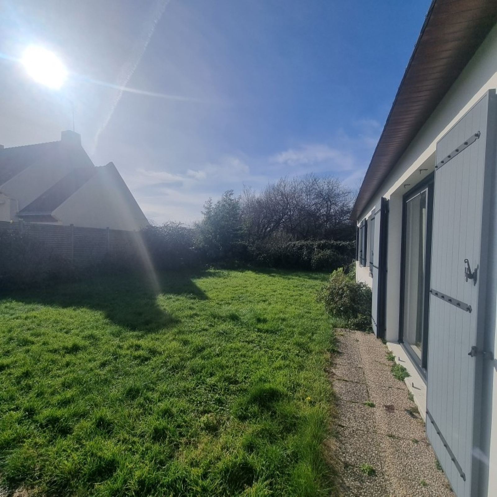 Proche plage de Kerhostin,en impasse, et exposée sud, cette charmante maison vous offre un séjour/salon avec cheminée donnant sur jardin et terrasse, une cuisine pouvant être ouverte, WC, SDE avec placard. Les deux chambres de belle taille sont désservies par un dégagement avec placards. Le tout sur un terrain clos (CES résiduel) sans vis-à-vis!